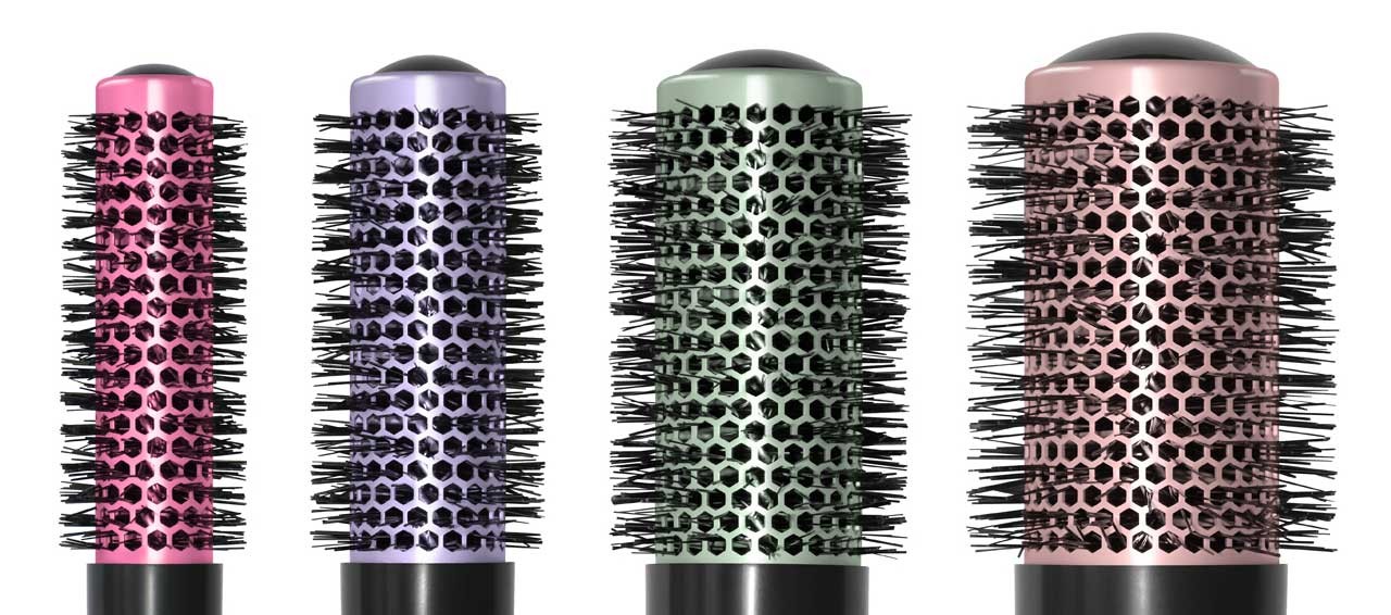Four round brushes in graduated sizes and stylish colours: