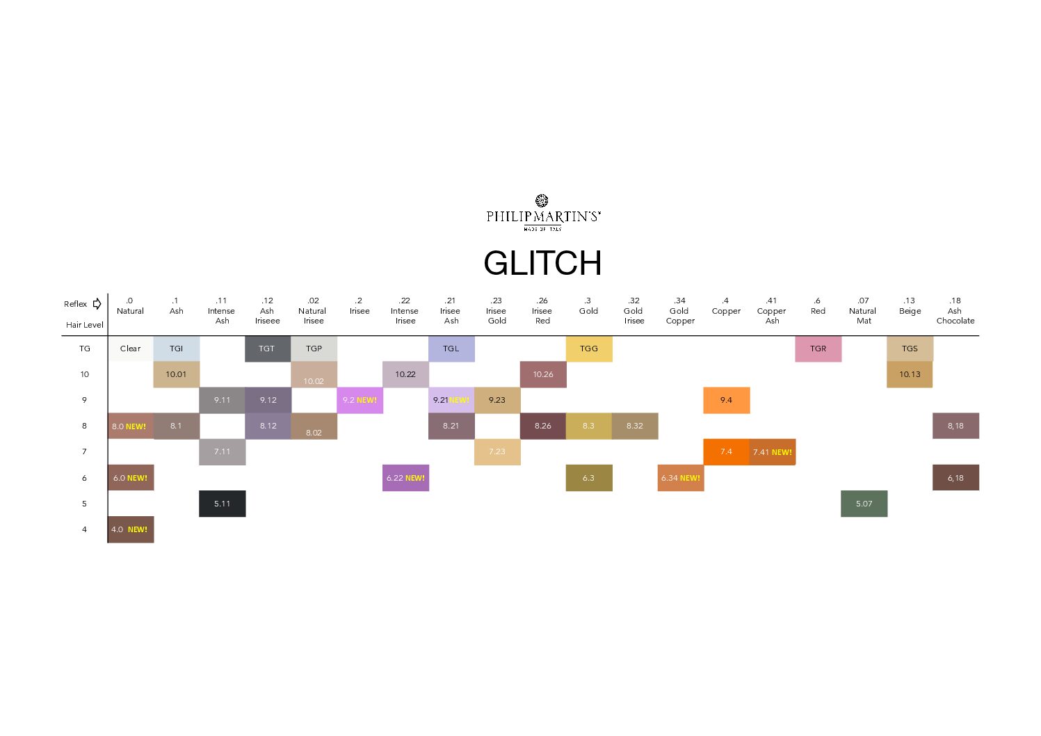 Glitch is a tone-on-tone, gentle and ammonia-free demi-permanent colouring service for natural, coloured or bleached hair. Natural ingredients combined with the Wave Complex enrich the system and guarantee valuable protection of the hair fibre. Glitch tones and enriches hair colour. Intensity and reflection can be modulated with the Clear shade and application time. Its fluid cream formulation guarantees easy application and immediate use. The application time varies according to the service chosen, up to a maximum of 25 minutes (see service table). The duration of the toning effect varies from 6 to 20 shampoos, depending on the intensity of the colour applied.